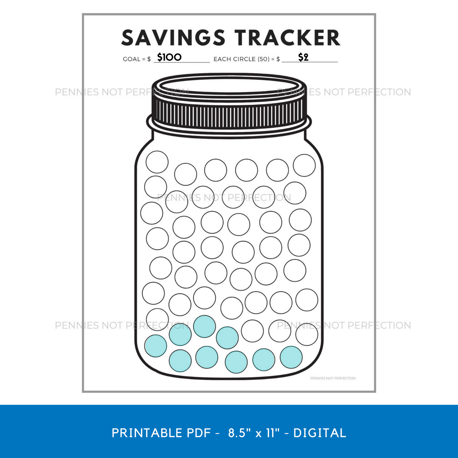 PRINTABLE Savings Jar Tracker to help you plan and save money! This money saving tracker can be used either as a printable or digitally with an app like GoodNotes.